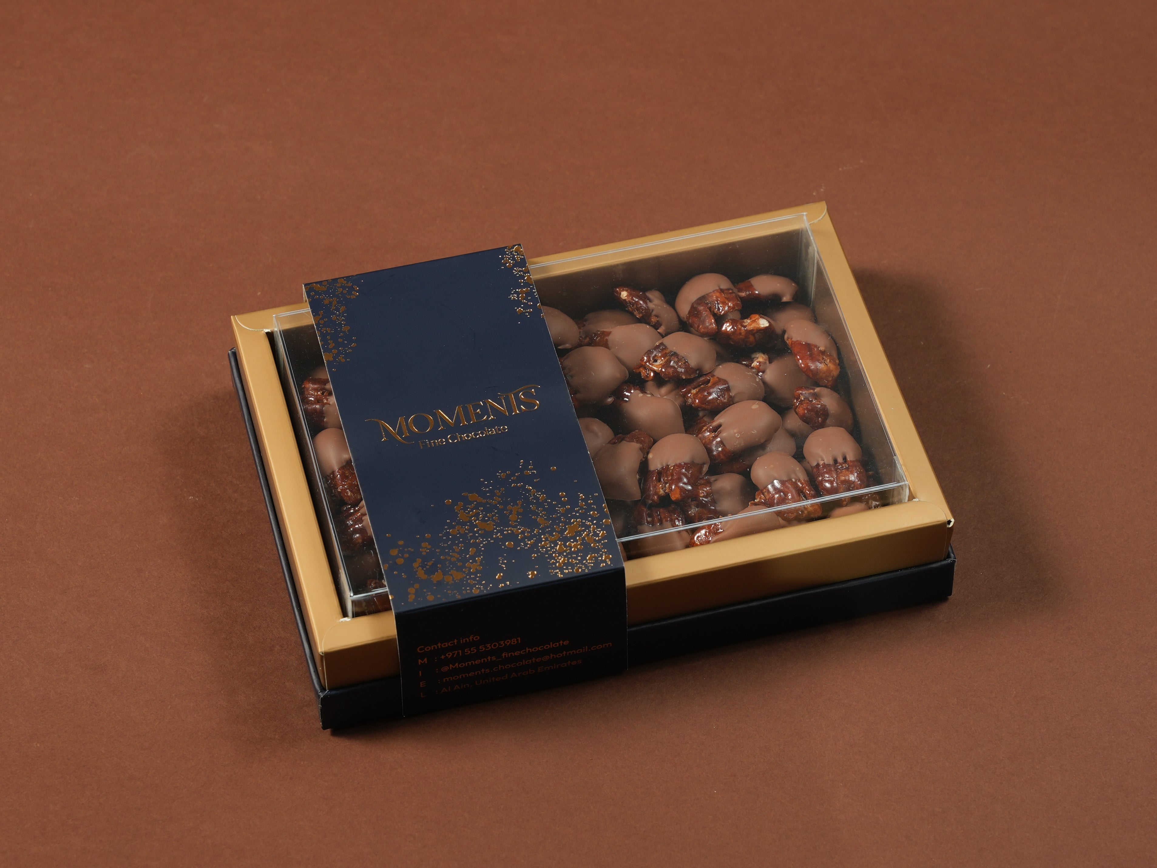 All product content—including images, logos, and branding—belongs to Moments Fine Chocolate and may not be reproduced without permission. Promotions and discount codes cannot be combined unless stated otherwise and may be revoked if misused. We are not liable for any indirect or consequential damages related to the use of our site or products. These terms are governed by UAE law. Our products may contain or come into contact with allergens like nuts, dairy, soy, and gluten; we advise customers with allergies to contact us before ordering. For support, reach us via WhatsApp at +971 55 530 3981 or email moments.chocolate@hotmail.com