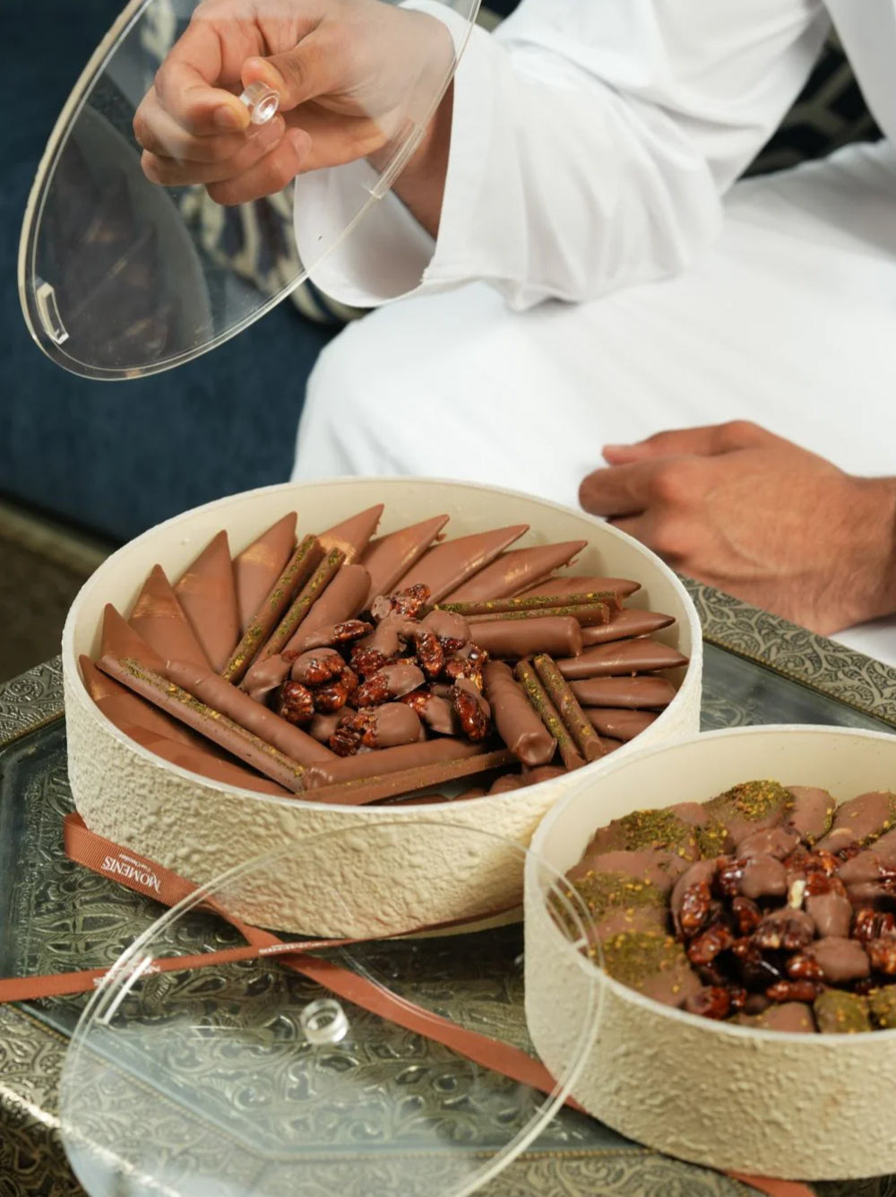 This beautifully stacked package showcases Middle Eastern flavors with a modern chocolate twist, delivering indulgence in every bite.