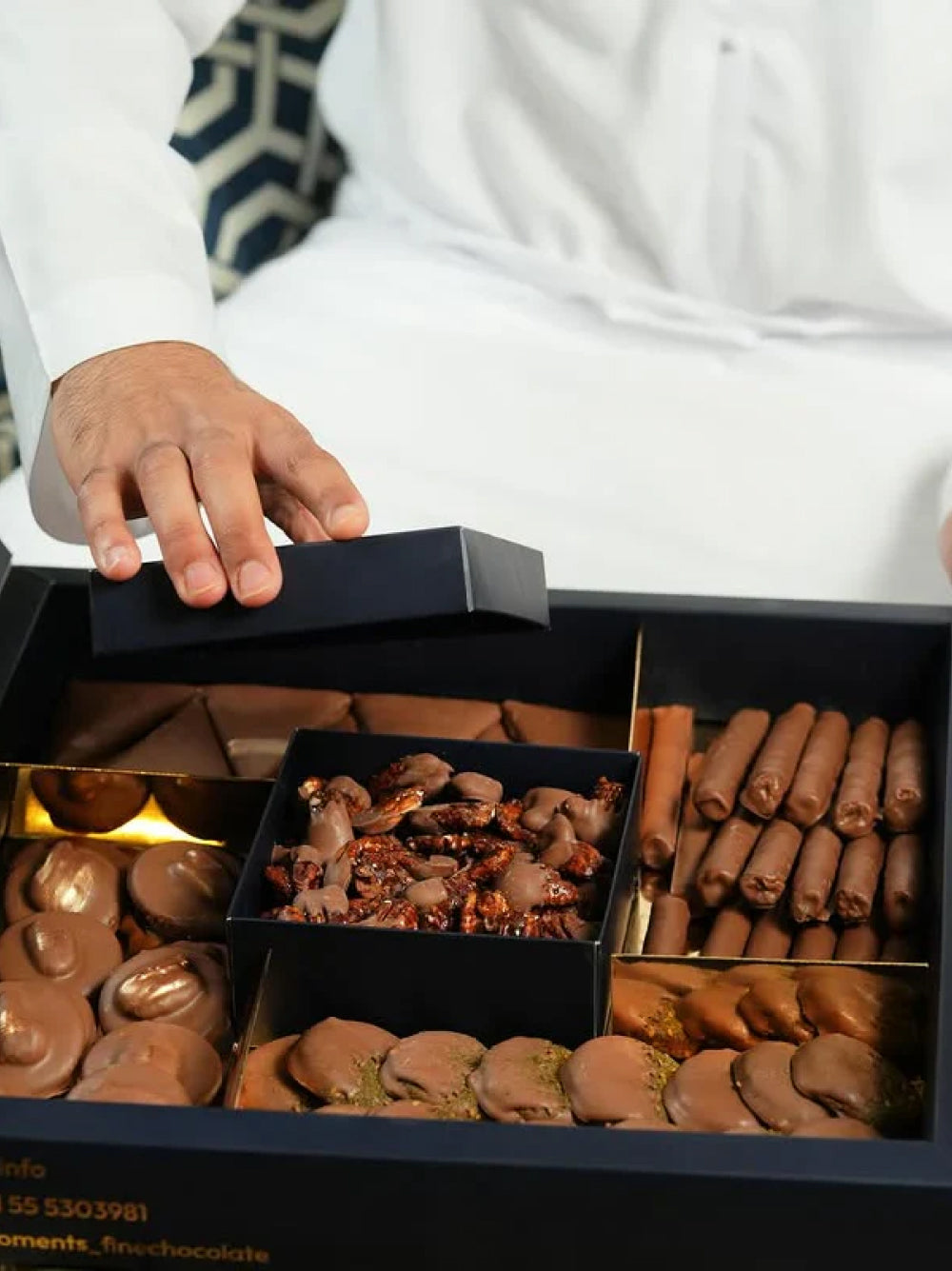 All product content—including images, logos, and branding—belongs to Moments Fine Chocolate and may not be reproduced without permission. Promotions and discount codes cannot be combined unless stated otherwise and may be revoked if misused. We are not liable for any indirect or consequential damages related to the use of our site or products. These terms are governed by UAE law. Our products may contain or come into contact with allergens like nuts, dairy, soy, and gluten; we advise customers with allergies to contact us before ordering. For support, reach us via WhatsApp at +971 55 530 3981 or email moments.chocolate@hotmail.com