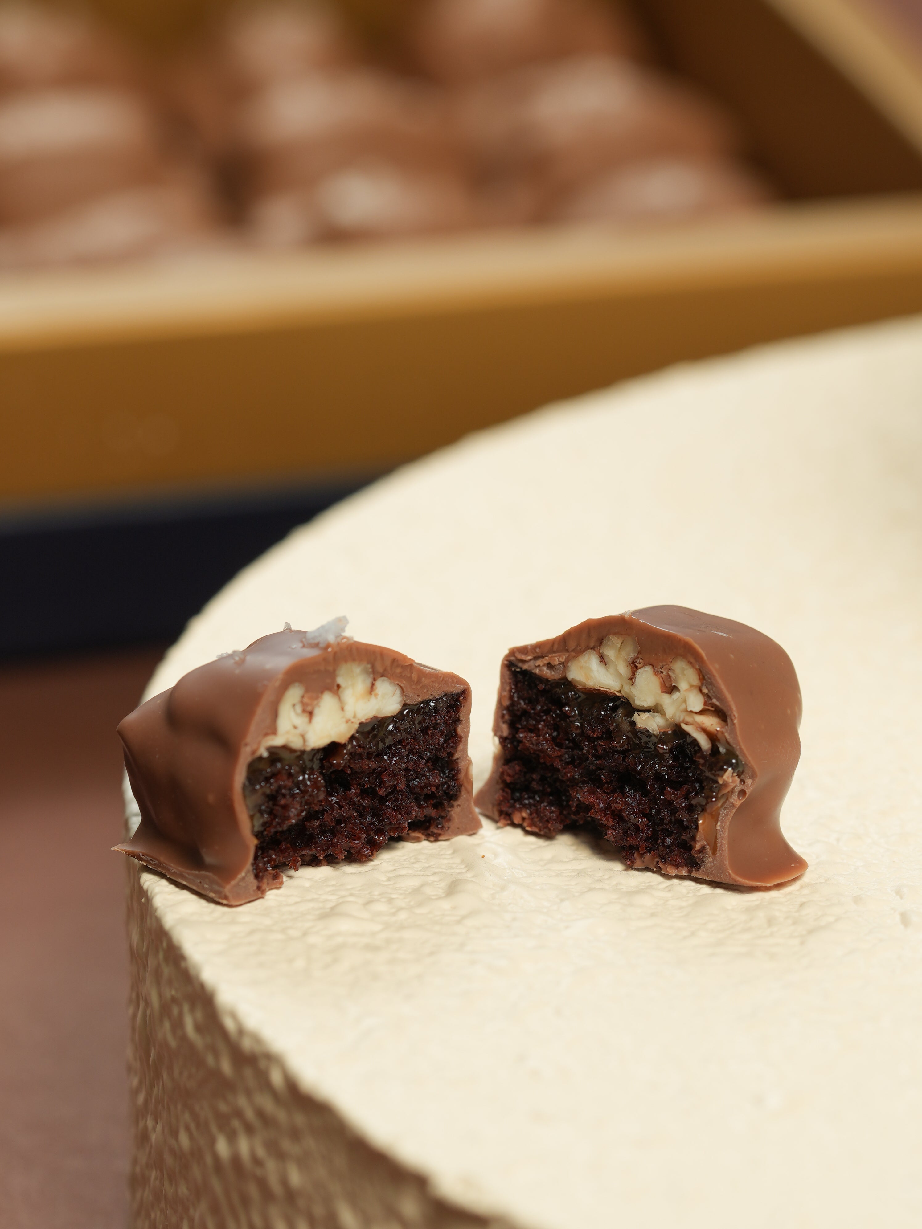 Experience the perfect harmony of flavors with our decadent chocolate-covered cakes, expertly topped with crunchy roasted pecans and a generous drizzle of rich salted caramel sauce. Each bite delivers a luxuriously smooth chocolate coating, a satisfying crunch, and a moist, flavorful cake center that melts in your mouth. Ideal for dessert lovers and gift-givers alike, these gourmet treats offer an irresistible combination of sweet, salty, and nutty goodness.