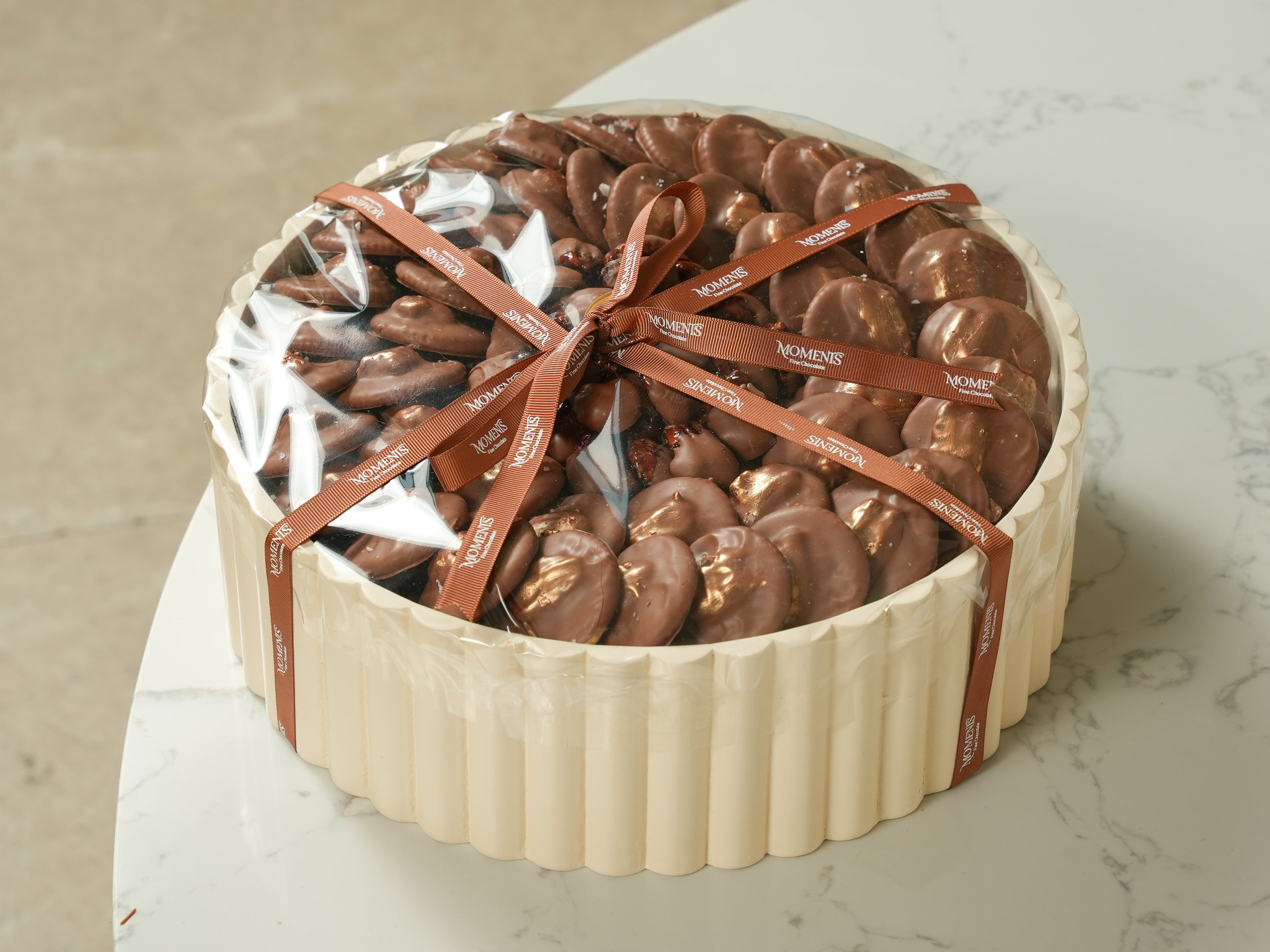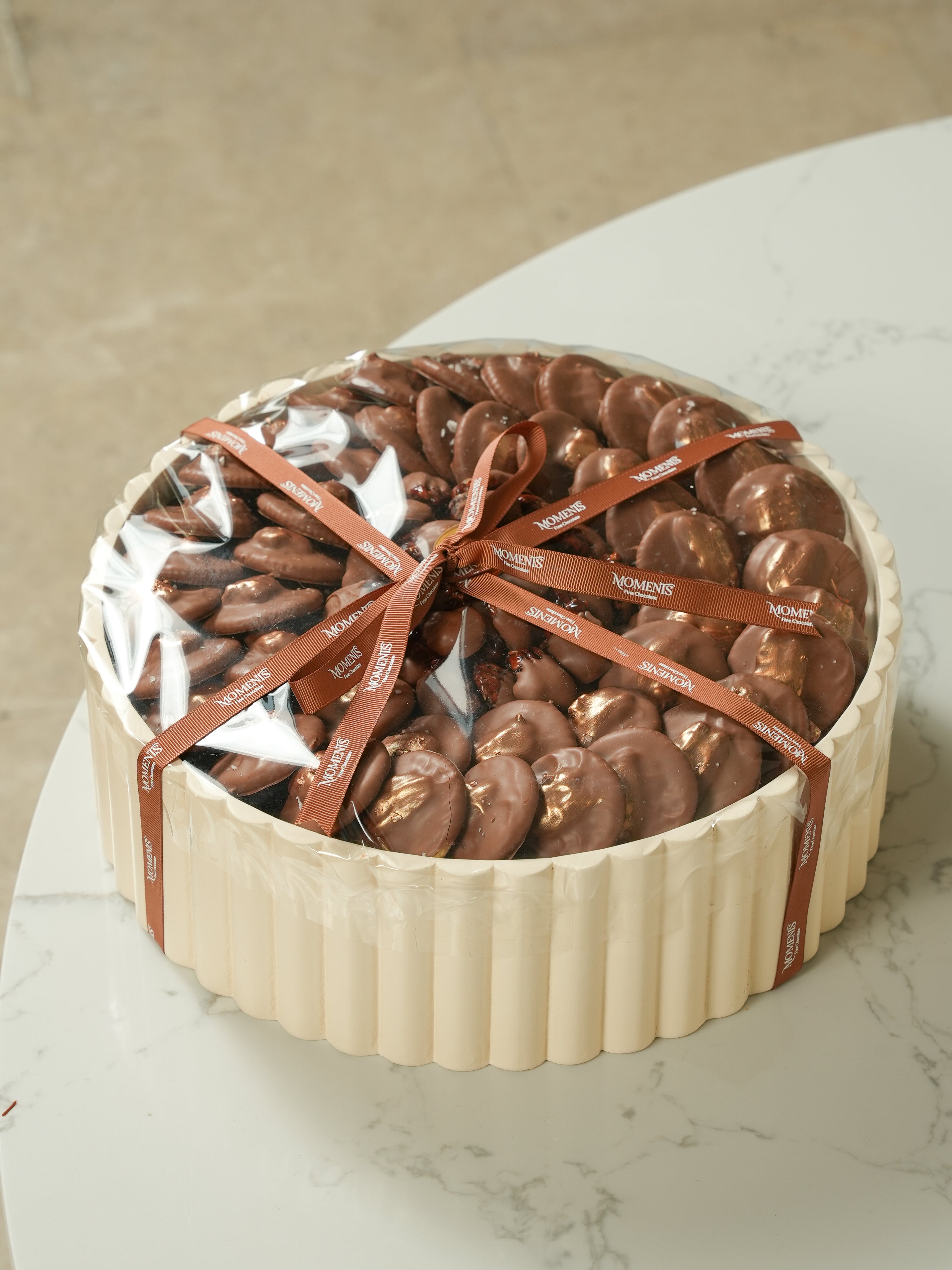 Experience indulgence in every bite with our Signature Tray 1.5 KG, a luxurious assortment of handcrafted chocolates designed to impress. Elegantly packed in a cream-toned premium tray and tied with Moments’ signature satin ribbon, this 1.5 KG tray is the perfect fusion of elegance and flavor.